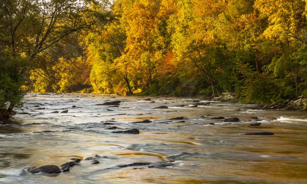Popular for kayaking and tubing, the Cartecay River winds through the region’s lush landscapes and offers fun for all ages. The Cartecay River is a local favorite for kayaking, tubing, and fishing. Its gentle rapids and winding path through the North Georgia countryside offer both relaxation and adventure. The riverbanks are lined with wildflowers in spring and brilliant foliage in the fall, making every visit a new experience.